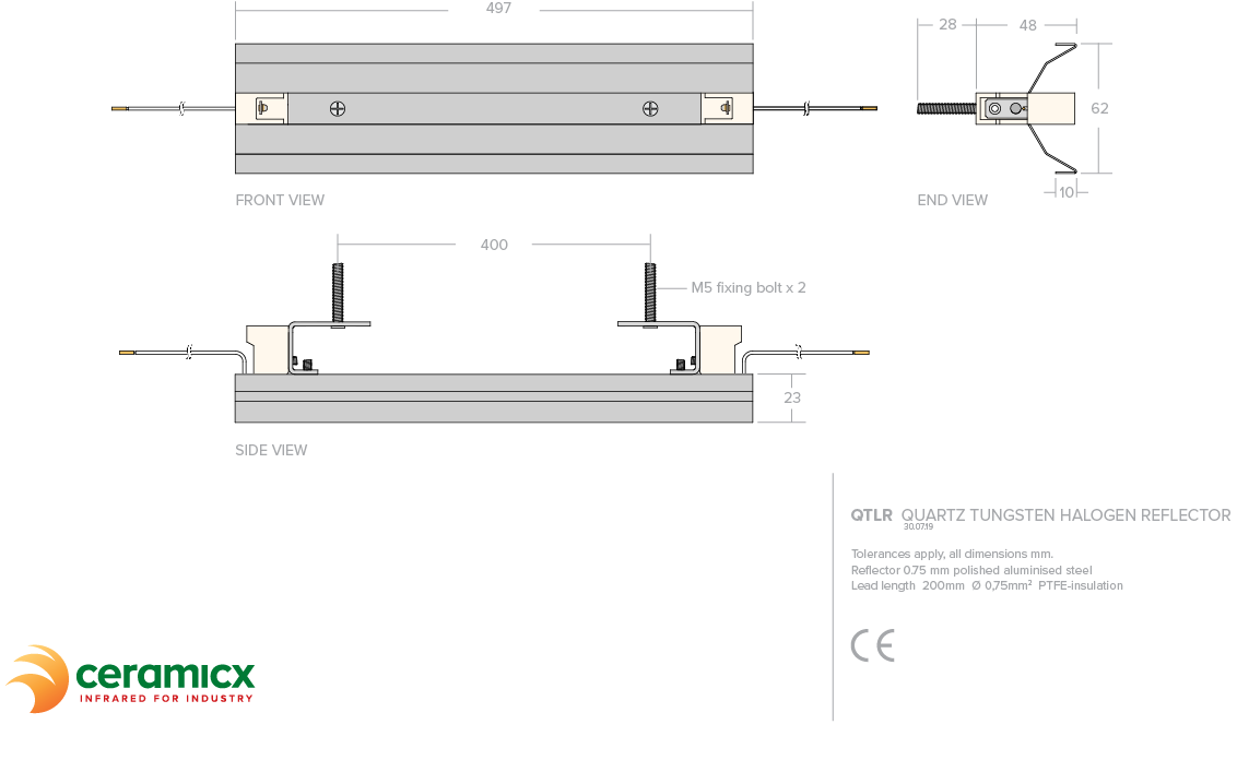 R7s holders with 200mm leads Ø 0.75mm with PTFE-insulation
