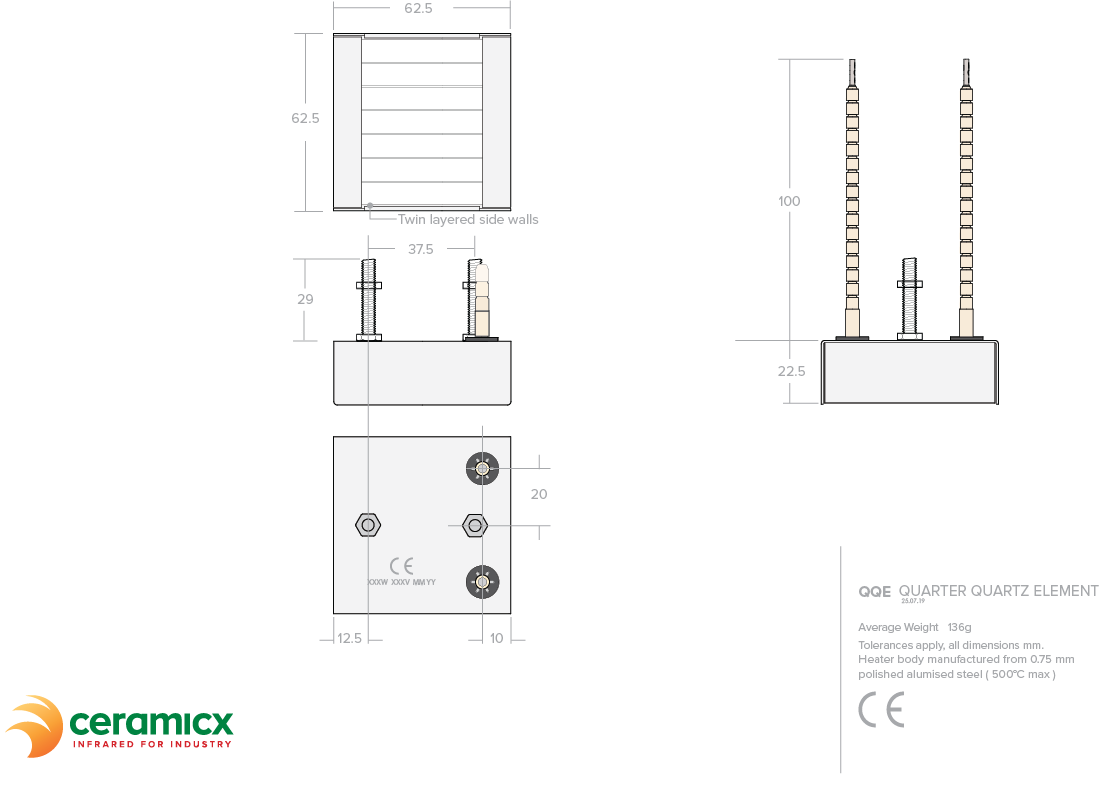 Recommended radiation distance from heater is 100 mm to 200 mm