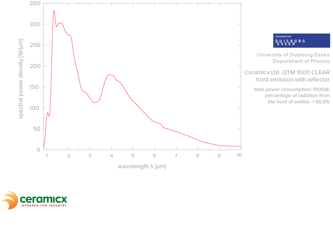 The tungsten filament used in these heaters is the porcupine or star type coil, which can be operated at temperatures up to 1500°C (2732°F), with peak wavelength emissions of approximately 1.6 microns. It reaches top temperatures within seconds.