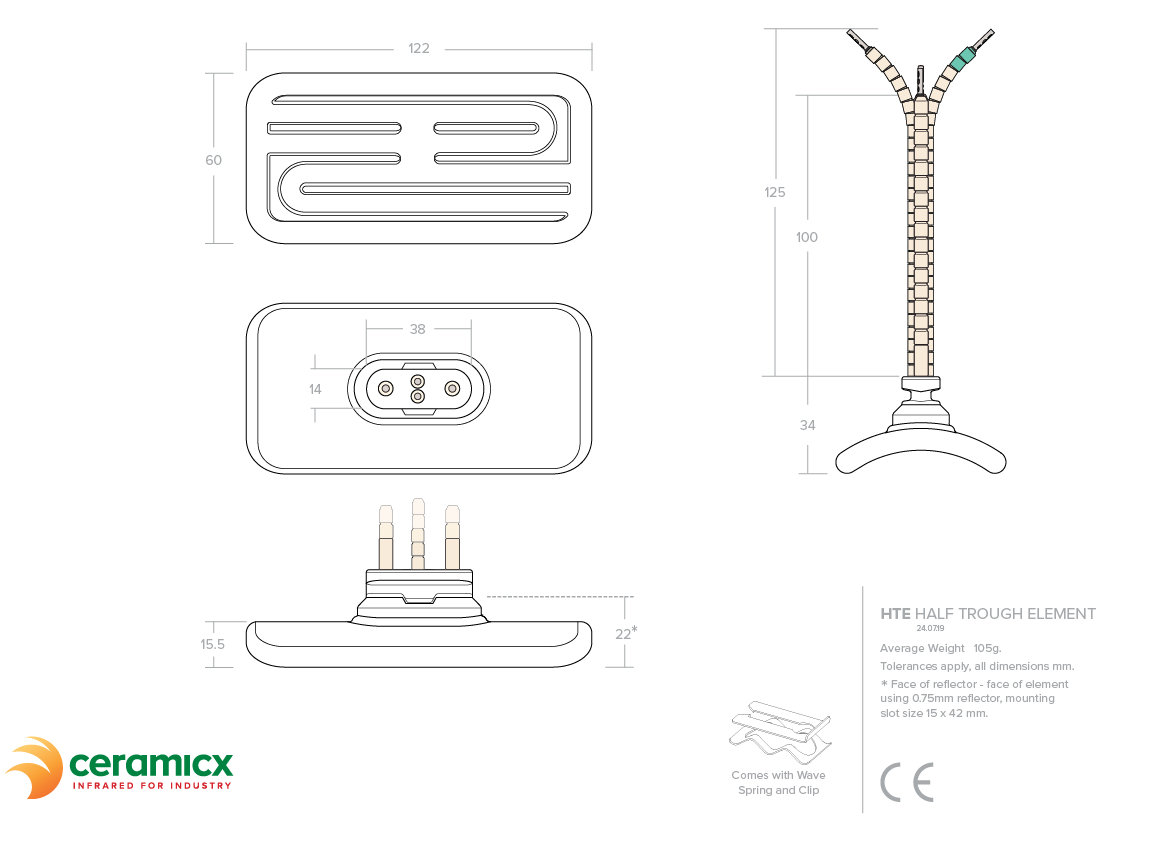 Supplied with 100mm ceramic beaded power leads